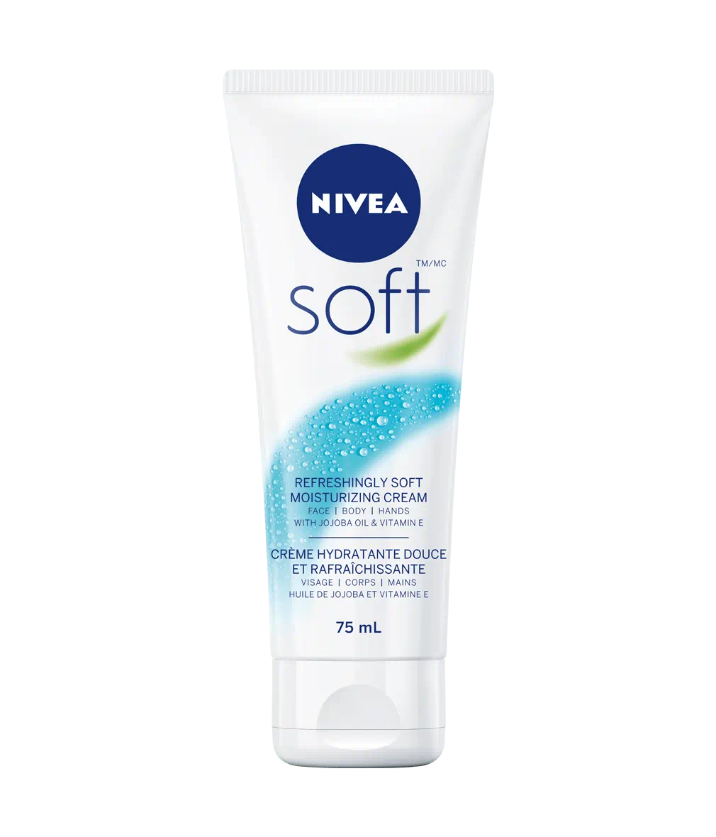 NIVEA Soft Moisturising Cream 75ml est une crème de jour légère et rafraîchissante pour une hydratation immédiate et durable. Formulée avec de la vitamine E et de l’huile de jojoba, elle laisse la peau douce, souple et revitalisée. Idéale pour un usage quotidien sur le visage, le corps et les mains.